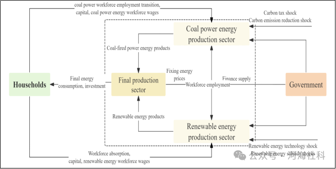 图1 评估中国煤电劳动力转型与经济发展的DSGE 模型分析框架