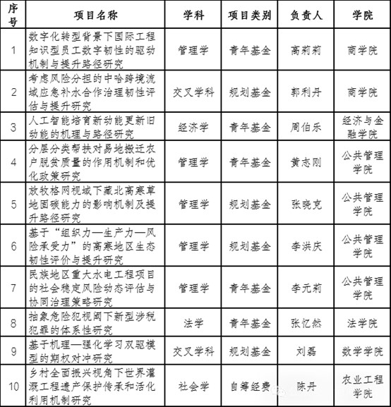 同时,根据近期教育部社科司公示的2025年度教育部人文社会科学研究一般项目评审结果,我校共有10个项目成功入选公示名单。